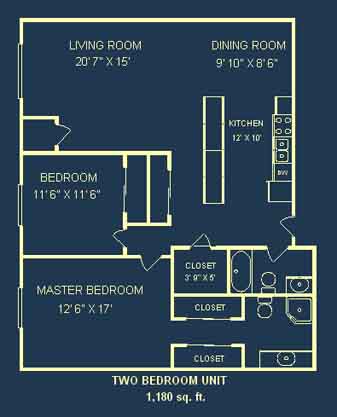 | Two bedroom, two bath apartment - $1100 | |